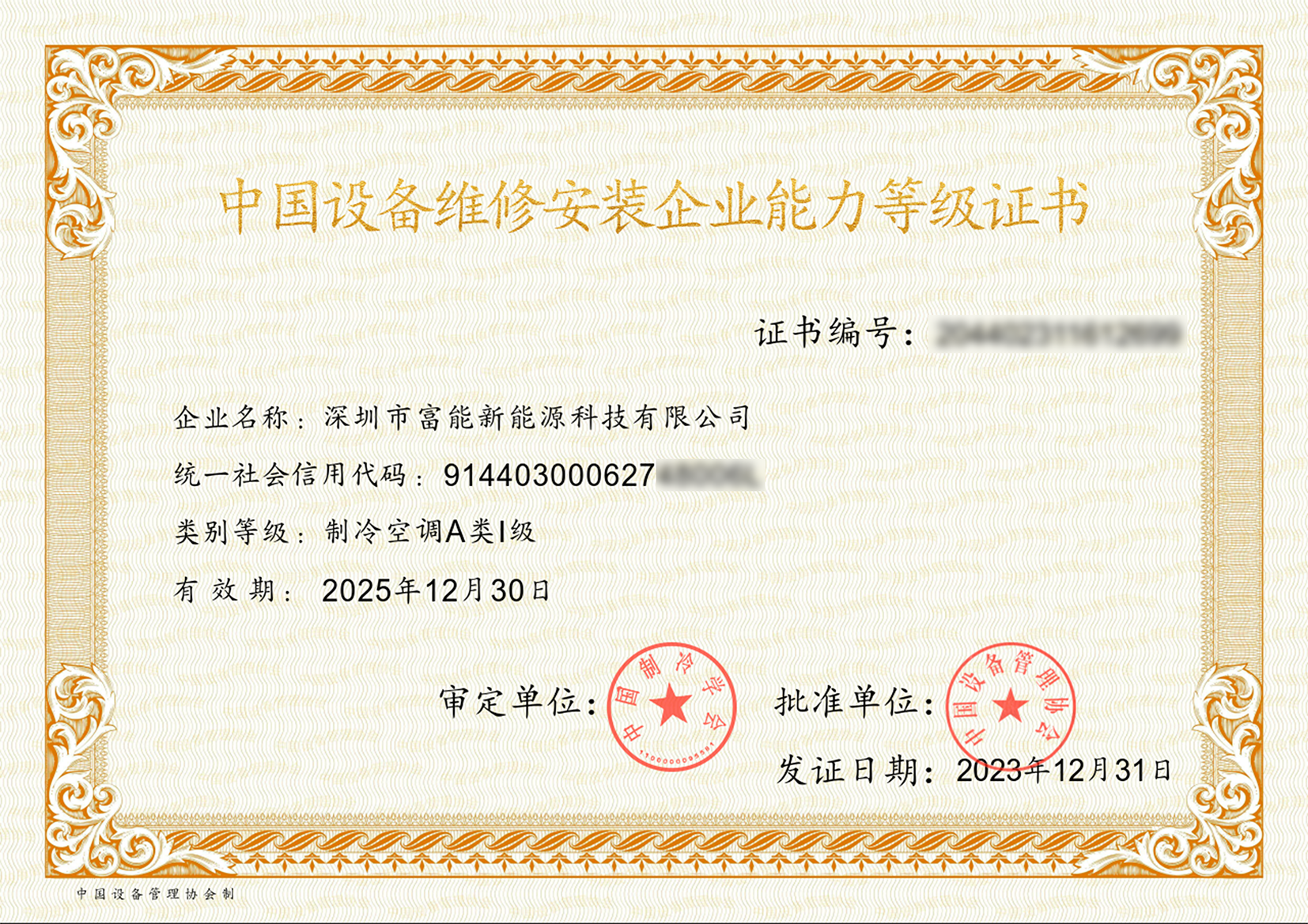設(shè)備資質(zhì)A類1級